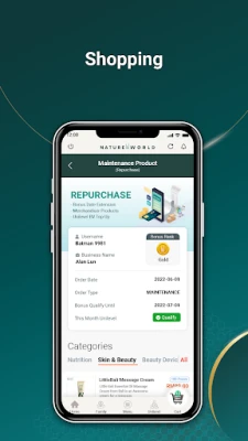 - In just a few simple steps, you may easily enroll a new member anywhere in the world. - Shop and order NatureWorld® products internationally, either by yourself or by assisting downlines. - Monitor personal and downline sales performance in real time. - Distribute a QR code with an enrollment link using social media applications like as WeChat, WhatsApp, and Line. - Receive up-to-date corporate promotion and news through push notification - and many other benefits